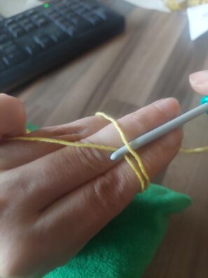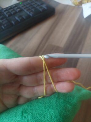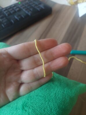 - Stejná příze jako na tělo (žlutá nebo bílá)