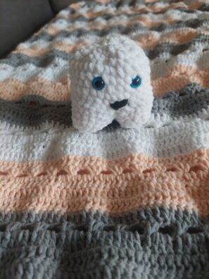 - Uháčkujete jednoduchou hračku do ruky či na kočárek