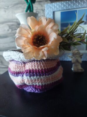 - Uháčkujeme obaly na květináče a držáky, aby květiny vysely ze stropu