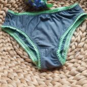Bambusové kalhotky se světle zeleným krajkovým lemováním. Bambus má tu výhodu, že v létě chladí a v zimě hřeje.