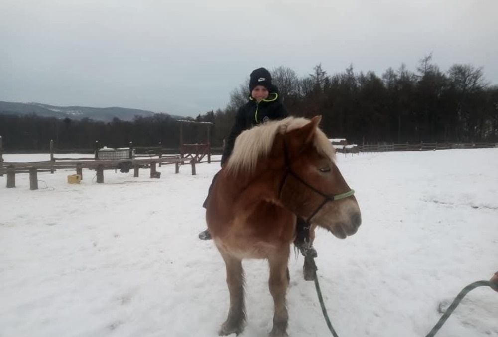 Učení, jízda a pravidelný trénink doma mi pomohl. Učení na Sáře patří k jedním z nejhezčích obdobích mého života. Také třeba ta část, kdy už jsem na ní seděla úplně sama, bez pomoci a i si jí řidila. Ovšem miláček Sáruška vždycky výcítila, když jsem nebyla úplně na stoprocent ve své kůži a tak si představte, když jsem ji pobídla, aby šla. Volám, řvu - di krok, pobídnu nohama, ale tak, abych ji neublížila a ona stojí. Holky dole v řadě sedí na židlích a koukají a já tam nahoře na koni, jakože už zkušenější, a ono nic, nepohla se ani o kousek. Prý musíš víc zařvat a víc nohama pobídnout, jinak si s Tebou bude dělat, co chce.